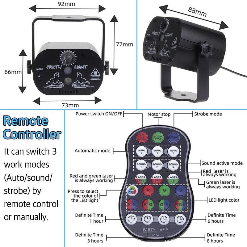 LED Laser Projector Disco Light Mini Auto Flash RG Sound Activated Laser Lamp Remote DJ Disco Party Soundlights Xmas Stage Light
