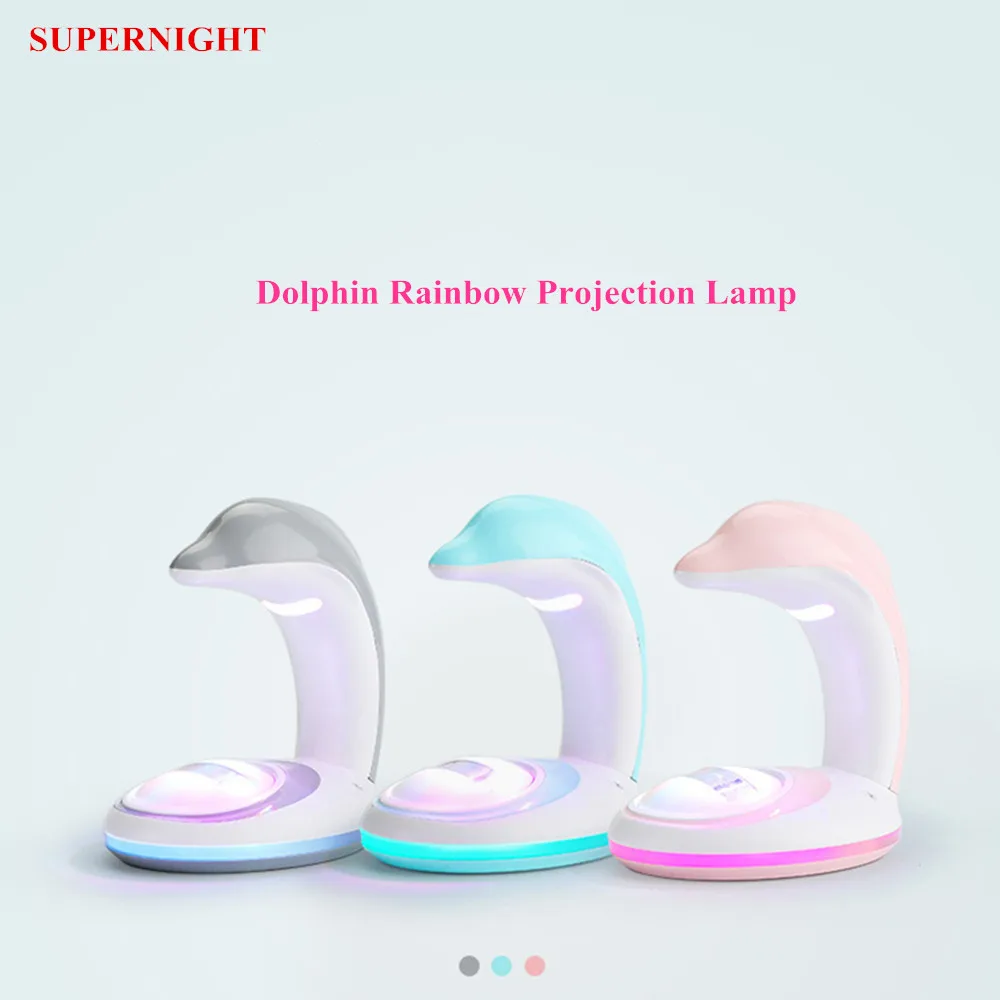 Best Chance of Dolphin Rainbow Projection Lamp Romantic Colorful LED Night Light USB Rechargeable Bedroom Bedside