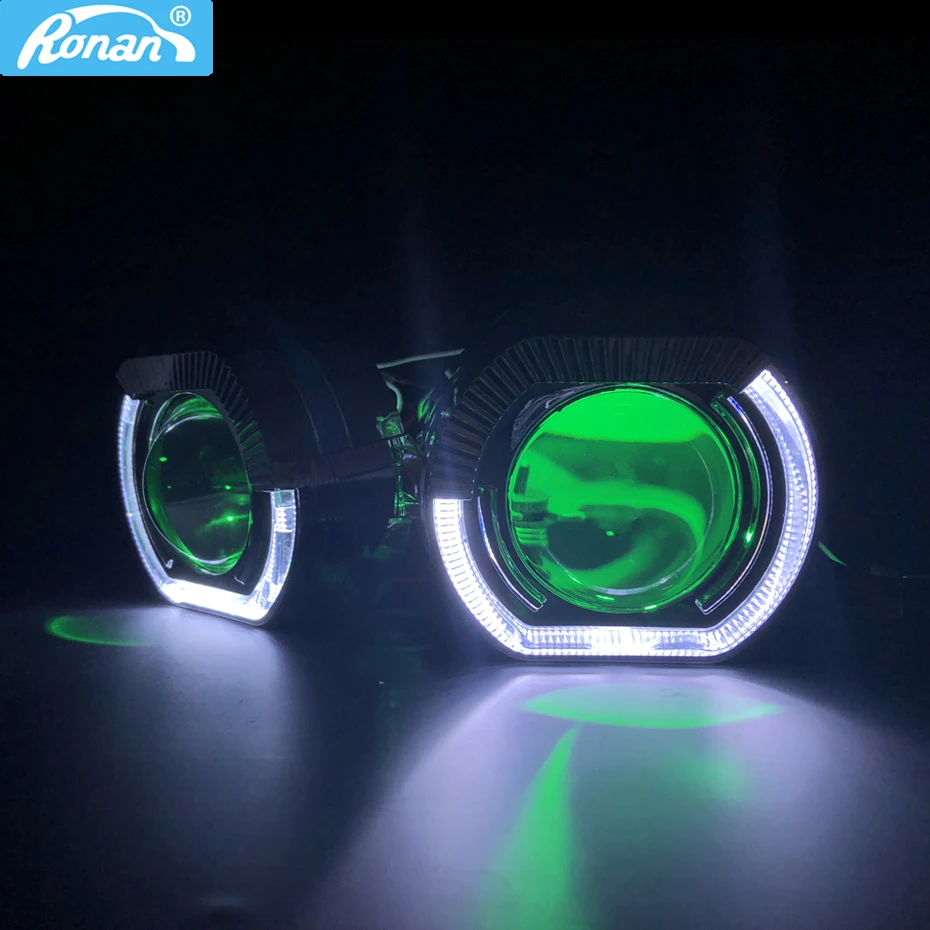 RONAN car styling 2.5'' Bi-xenon Projector H1 Lens Square LED halo with Angel Eyes shrouds for BWM H1 H4 H7 Car Headlight