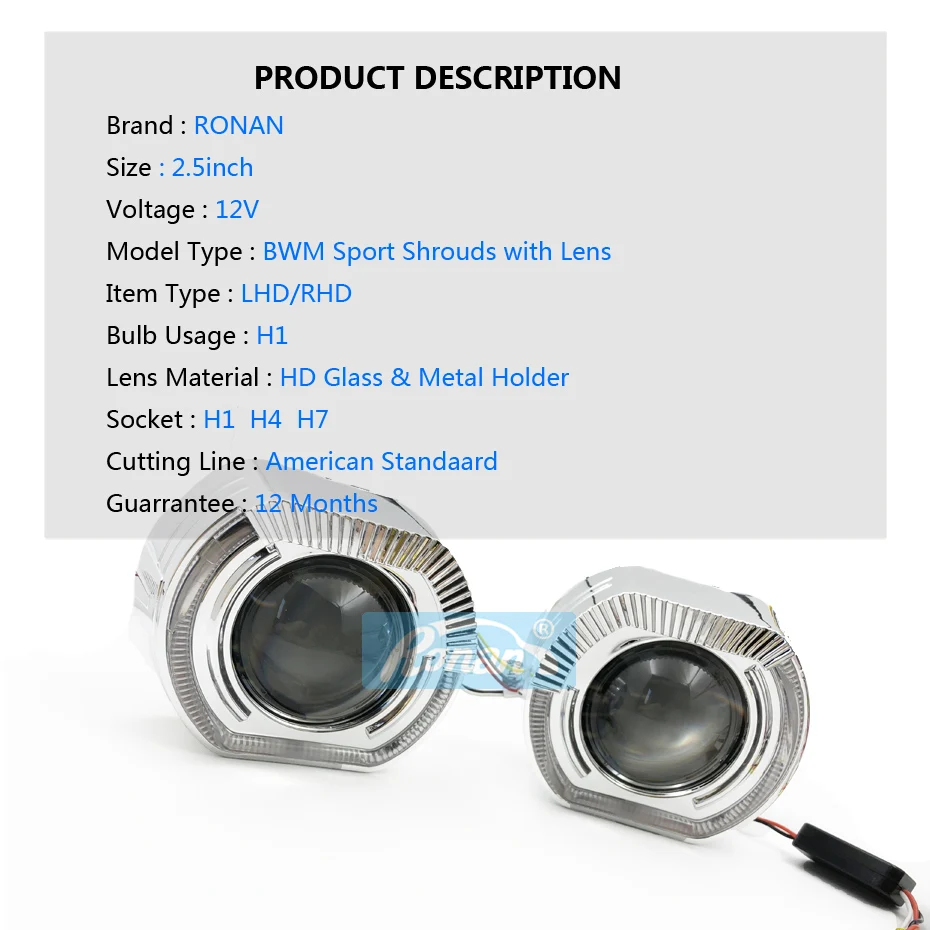 If You will buy for Ronan 2.5" bi xenon projector lens with sport angel eyes shrouds for BWM H1 H4 H7 socket devil eyes, then Ronan 2.5" bi xenon projector lens with sport angel eyes shrouds for BWM H1 H4 H7 socket devil eyes is possible make you like